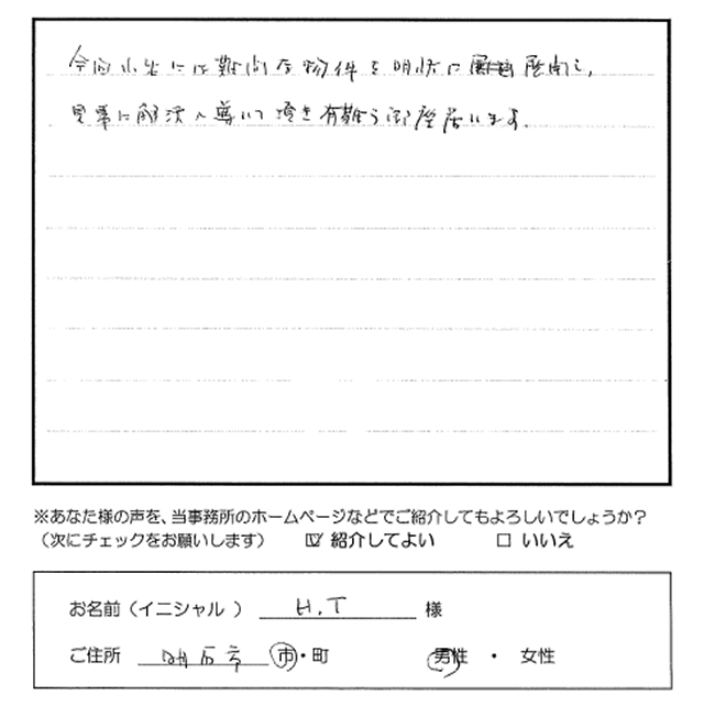 今回先生には難問な物件を明快に展開し、見事に解決へ導いて頂き有難う御座います。