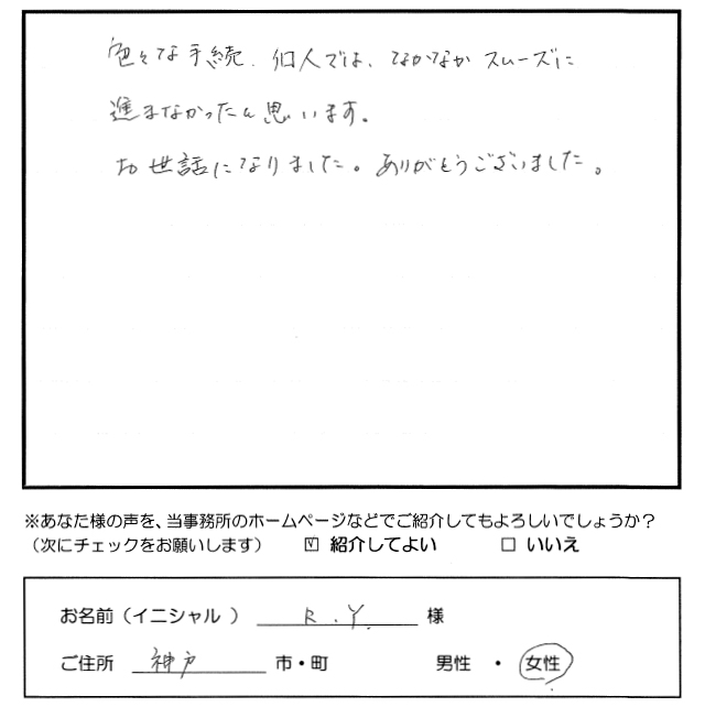 色々な手続、個人ではなかなかスムーズに進まなかったと思います。
